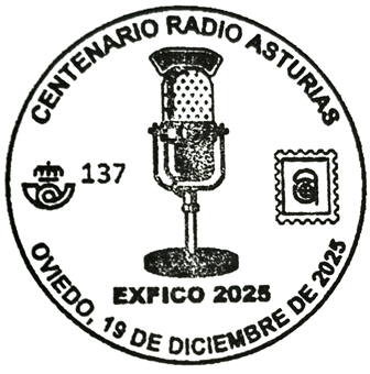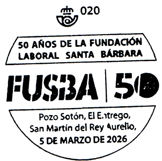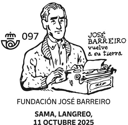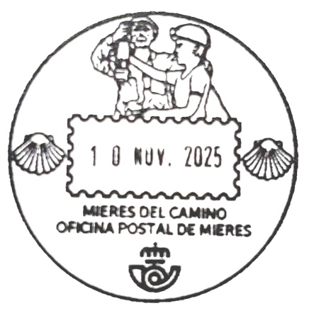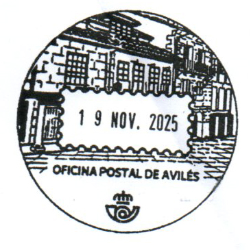 (CAJETÍN FECHADOR, LOCALIDAD Y LOGOTIPO DE CORREOS FUERA DE