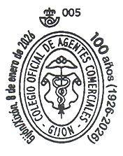 (CAJETÍN FECHADOR, LOCALIDAD Y LOGOTIPO DE CORREOS FUERA DE